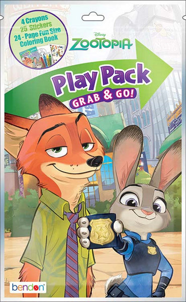 • Each Play Pack contains 4 crayons, 1 sticker sheet, and one 24-page mini fun-size coloring book